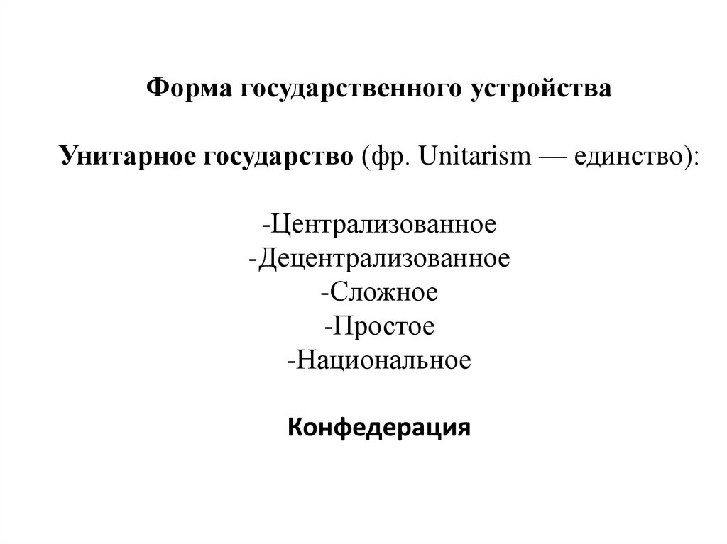 Форма государственного устройстваУнитарное государство (фр. Unitarism — единство):
