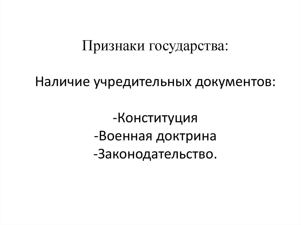 Признаки государства:Наличие учредительных документов: