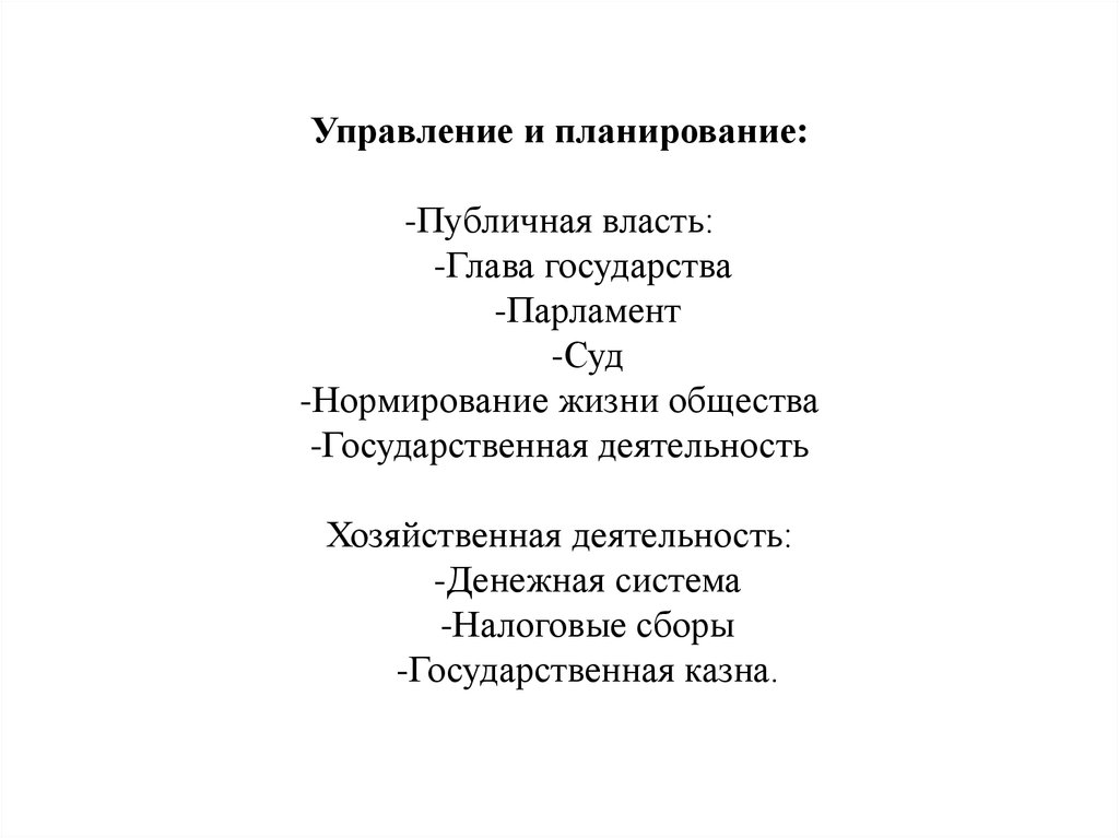 Управление и планирование:-Публичная власть:
