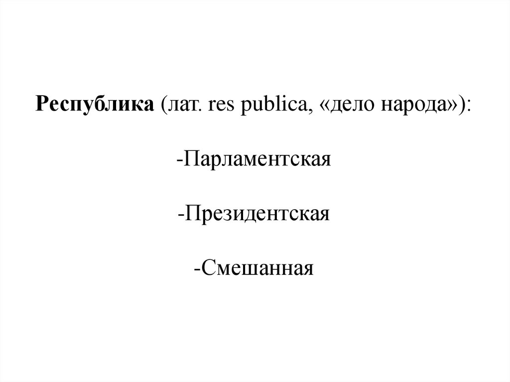 Республика (лат. res publica, «дело народа»):-Парламентская