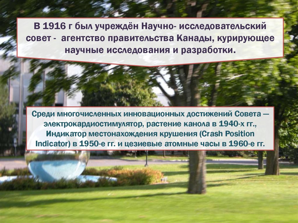 В 1916 г был учреждён Научно- исследовательскийсовет - агентство правительства Канады, курирующее