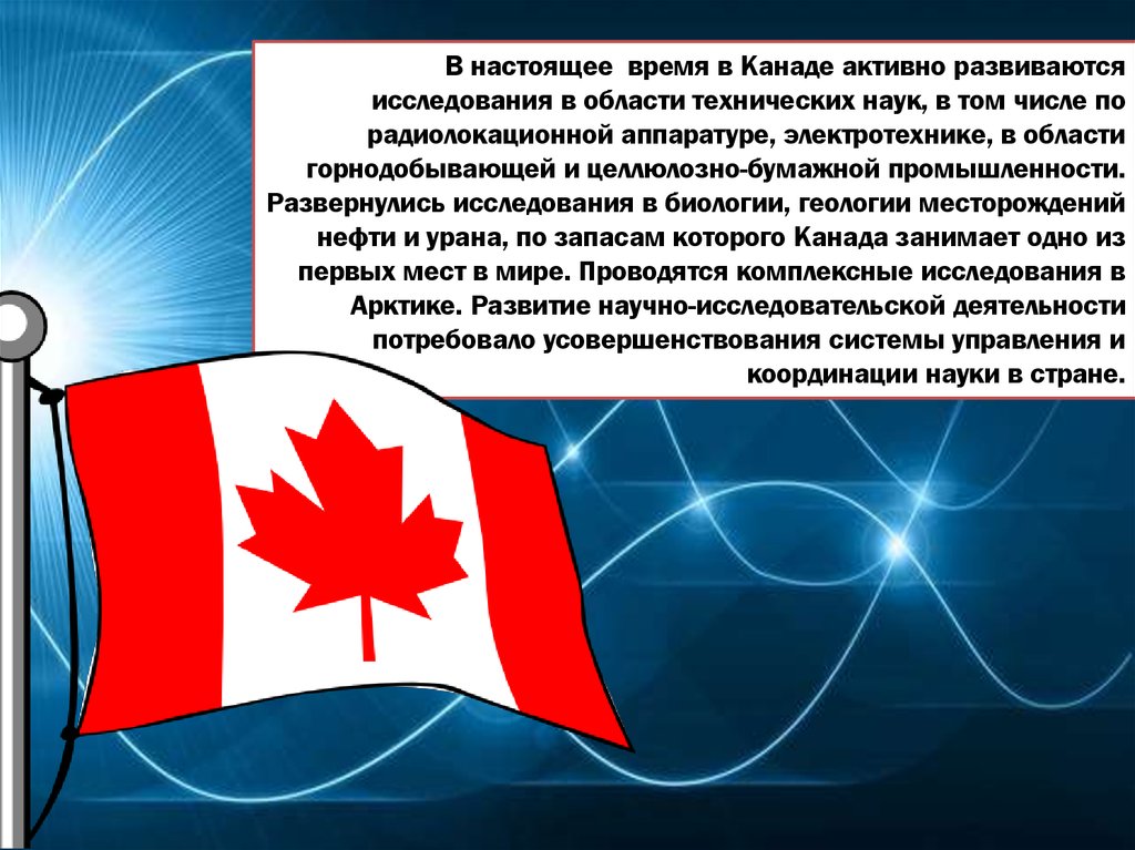 В настоящее время в Канаде активно развиваютсяисследования в области технических наук, в том числе по