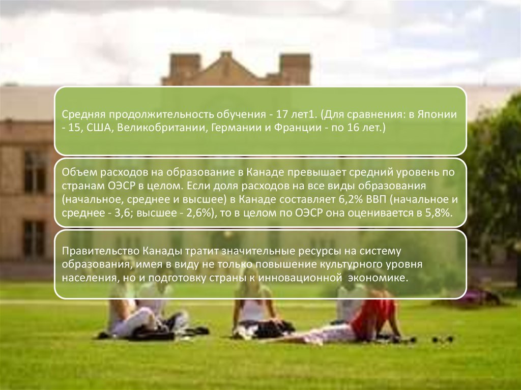 (начальное, среднее и высшее) в Канаде составляет 6,2% ВВП (начальное и