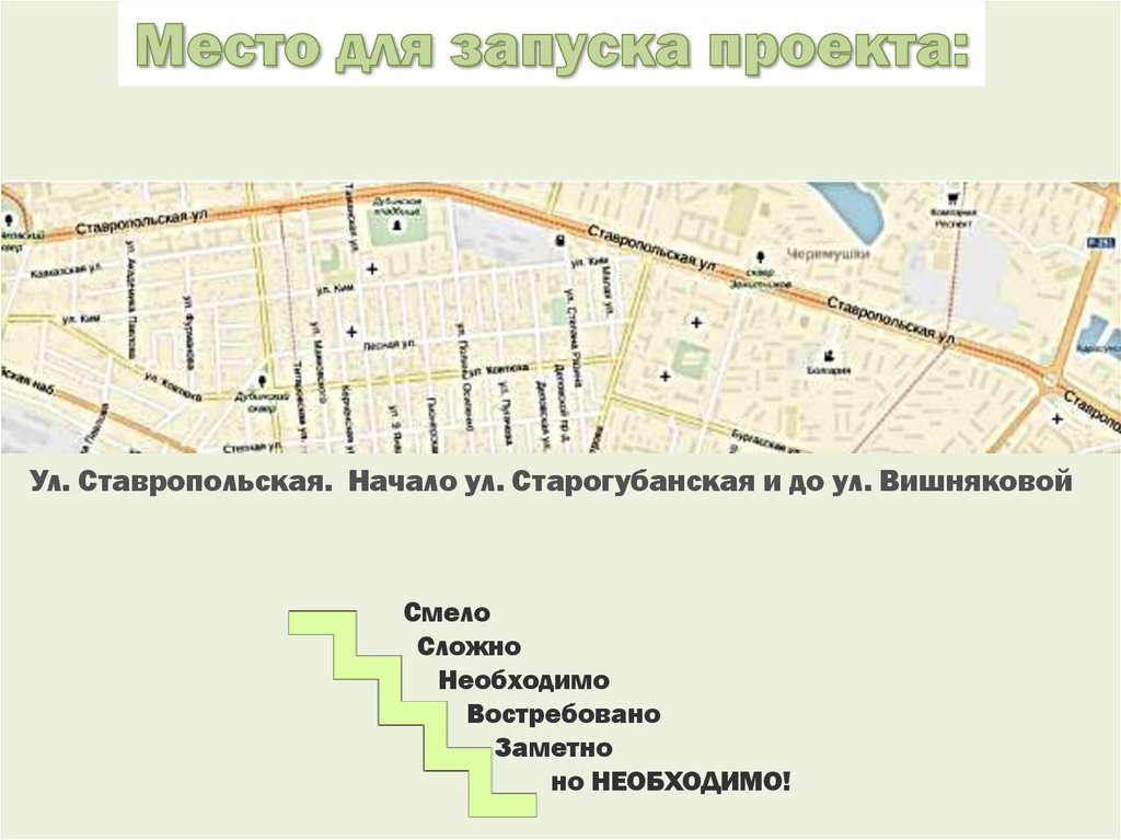 Ул. Ставропольская. Начало ул. Старогубанская и до ул. ВишняковойСмело
