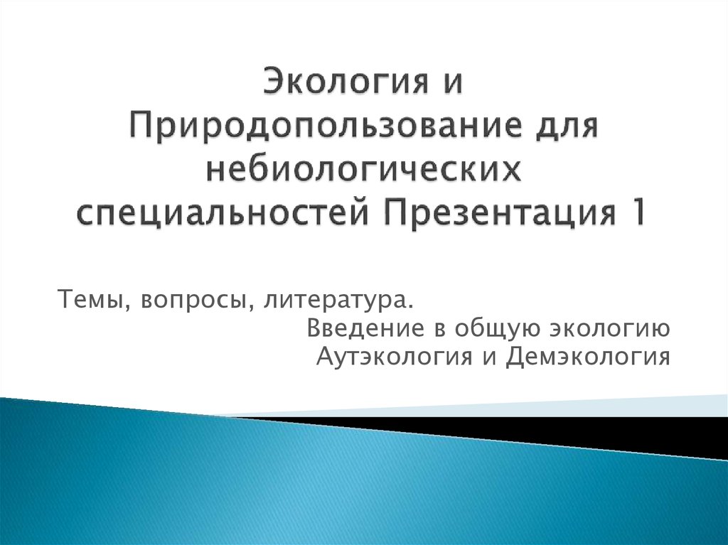 1. Экология и Природопользование для небиологических специальностей Презентация 1
