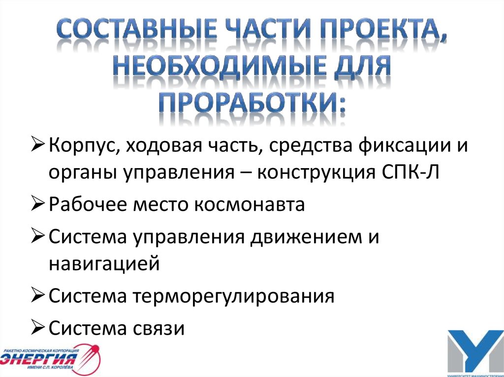 14. Составные части проекта, необходимые для проработки: