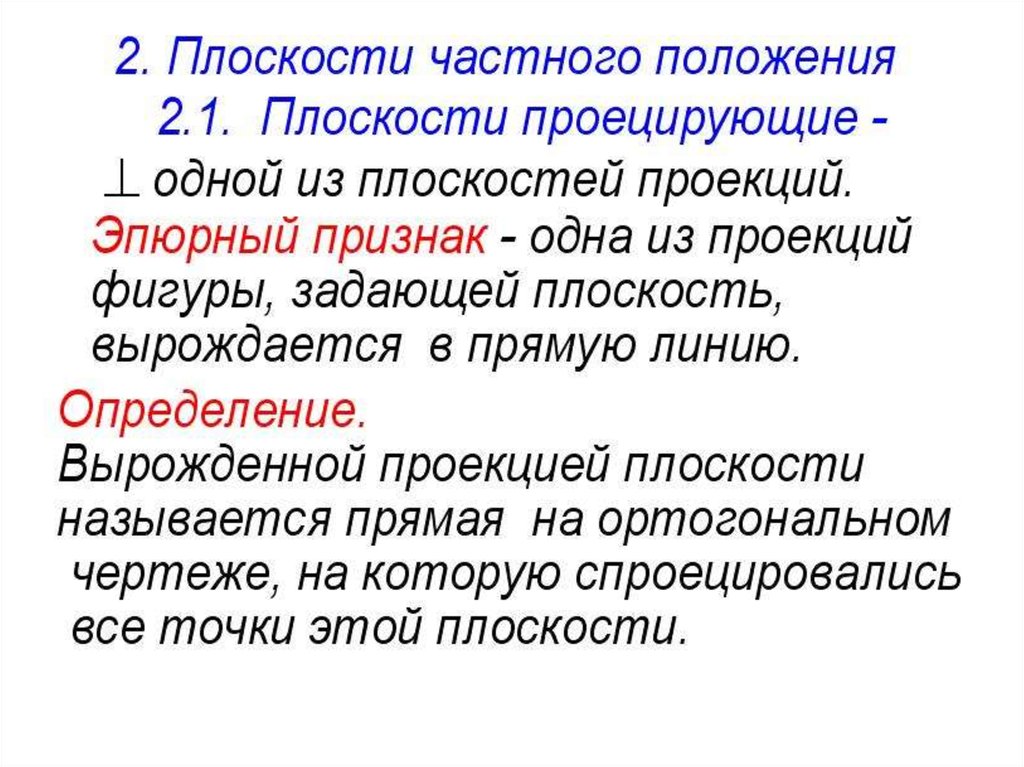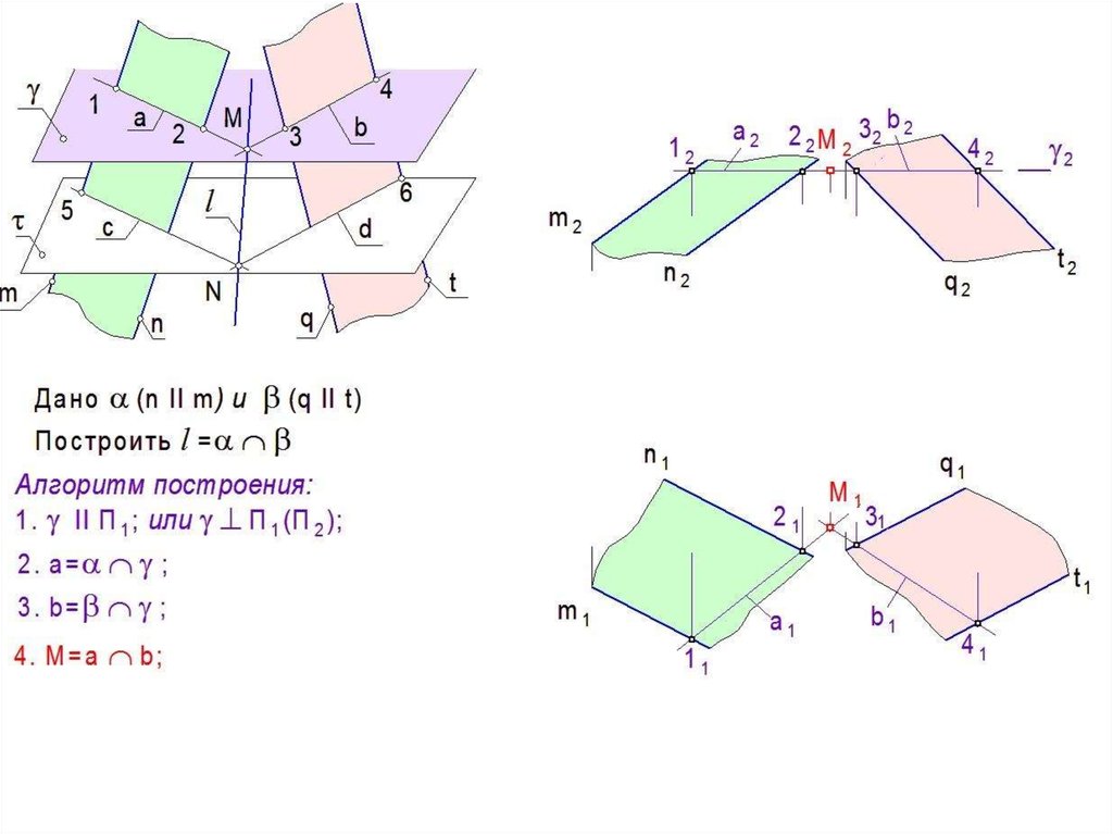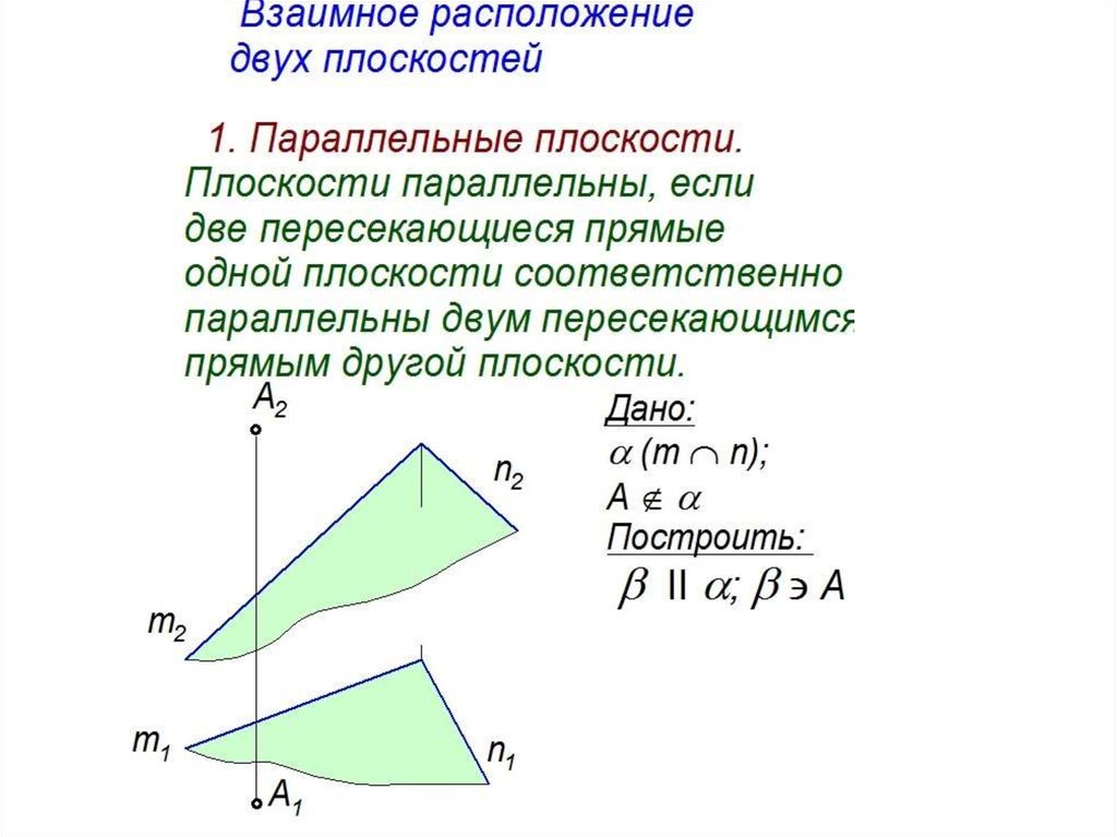 Взаимное расположение плоскостей, прямой и плоскости на чертежах