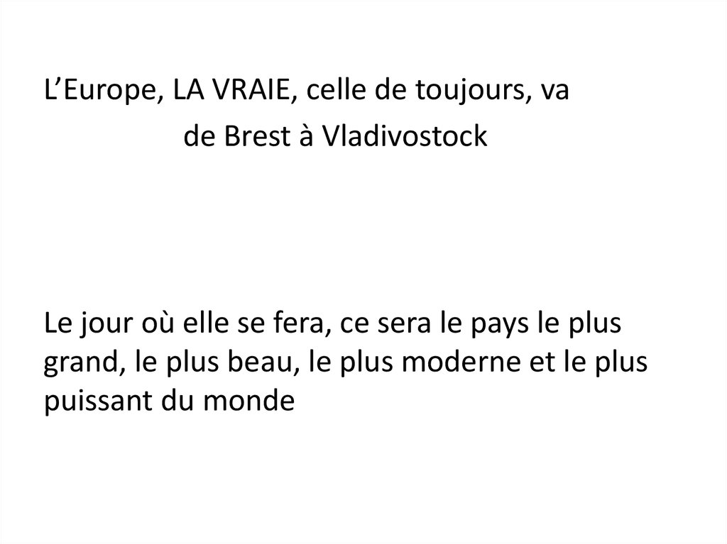 L'Europe, LA VRAIE, celle de toujours, va de Brest à Vladivostock