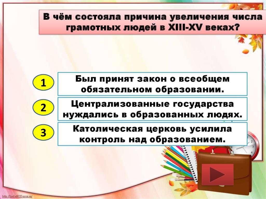 В чём состояла причина увеличения числаграмотных людей в XIII-XV веках?