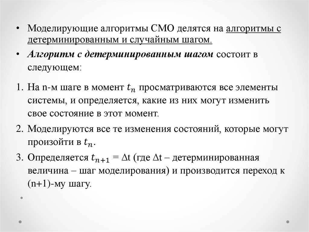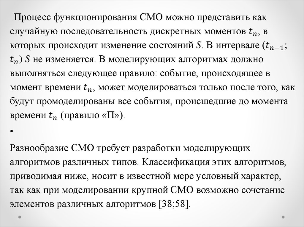 Процесс функционирования СМО можно представить какслучайную последовательность дискретных моментов