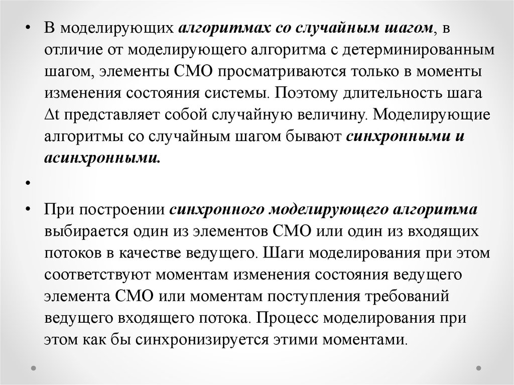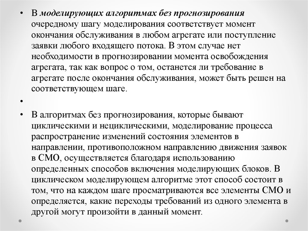1. Моделирующий алгоритм должен отражать процесс функционирования СМО во всей сложности и разнообразии и в то же время не