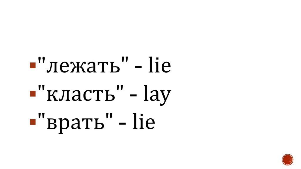 4. Вторая форма глагола "lie" - "lay" совершенно идентична глаголу "lay" (класть)