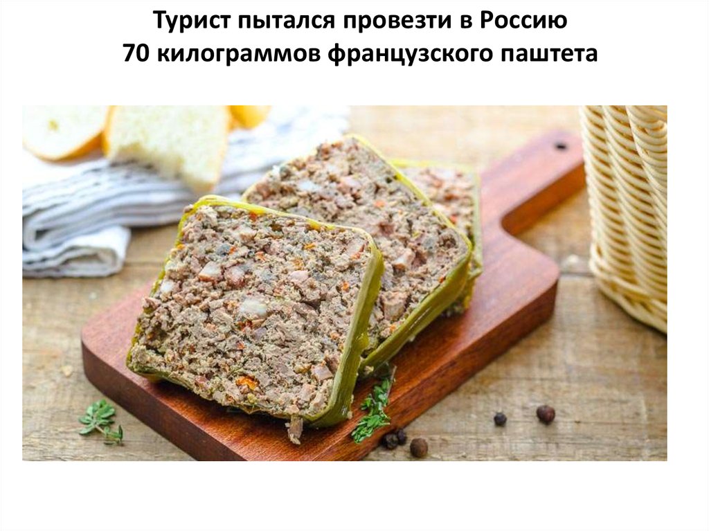 Турист пытался провезти в Россию70 килограммов французского паштета