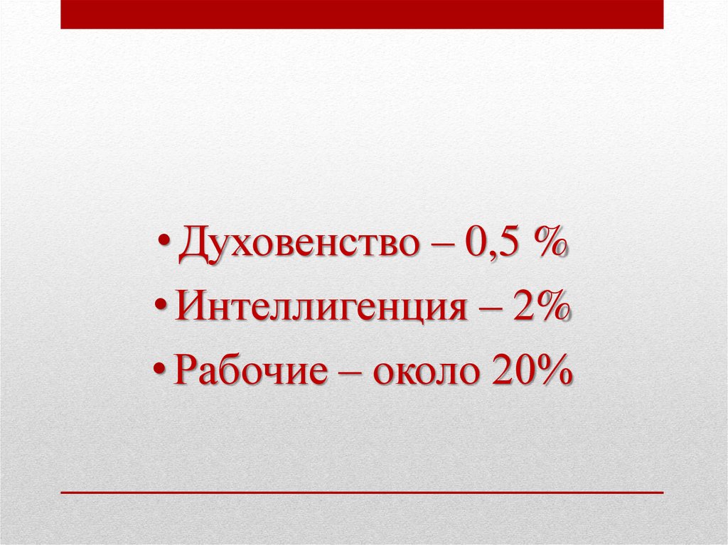 • Духовенство – 0,5 %• Интеллигенция – 2%