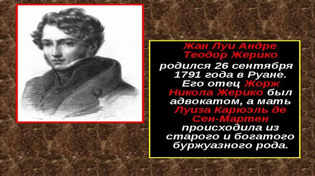 Жерико первым во французской живописи выразил свойственноеромантизму острое чувство конфликтности мира, стремление к воплощению