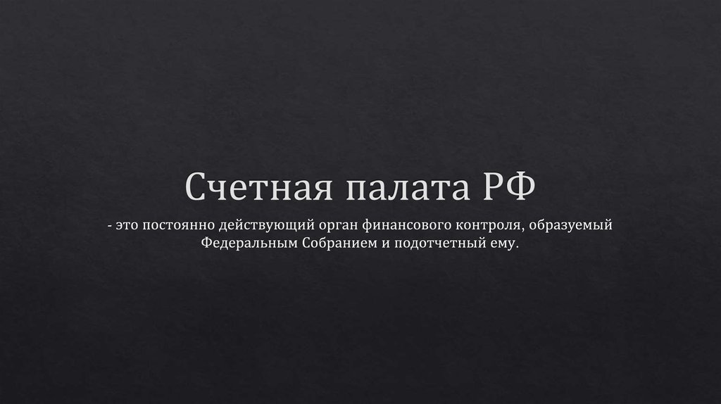 Счетная палата РФ - орган финансового контроля, образуемый Федеральным Собранием и подотчетный ему