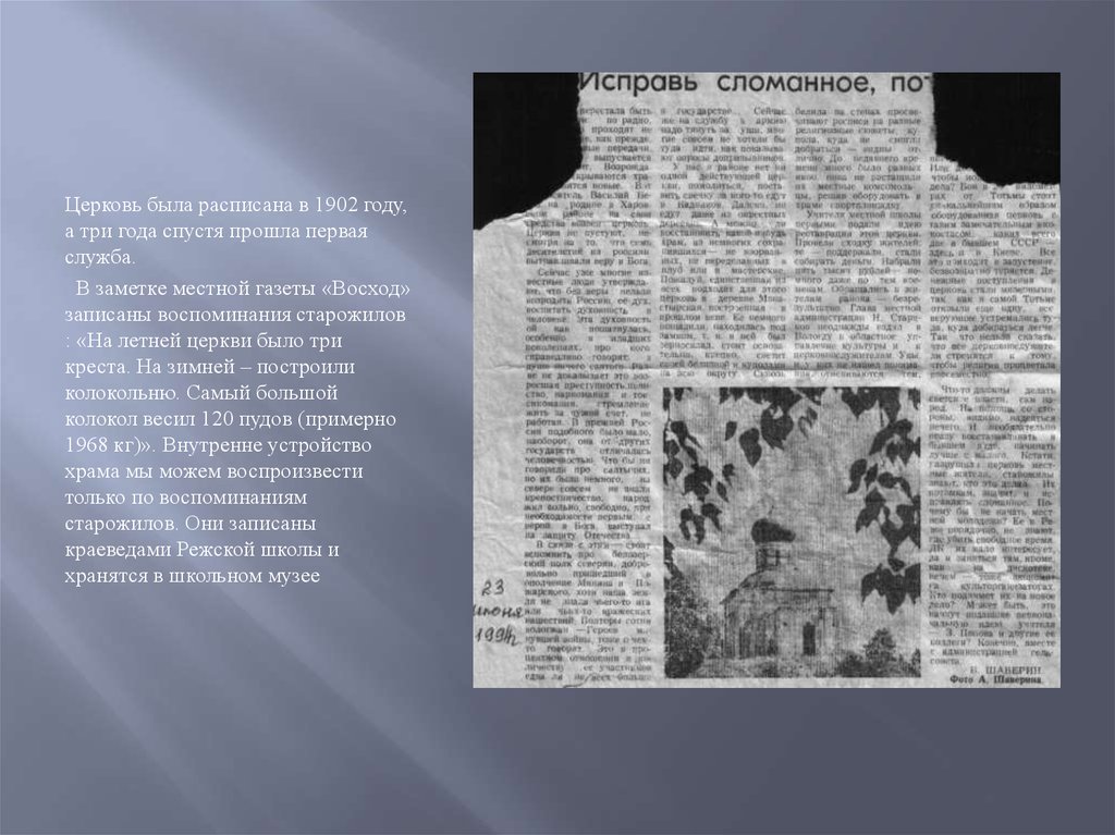 4. Тема исследовательской работы : «История храма Преображения Господня в деревне Монастырская Сямженского района Вологодской