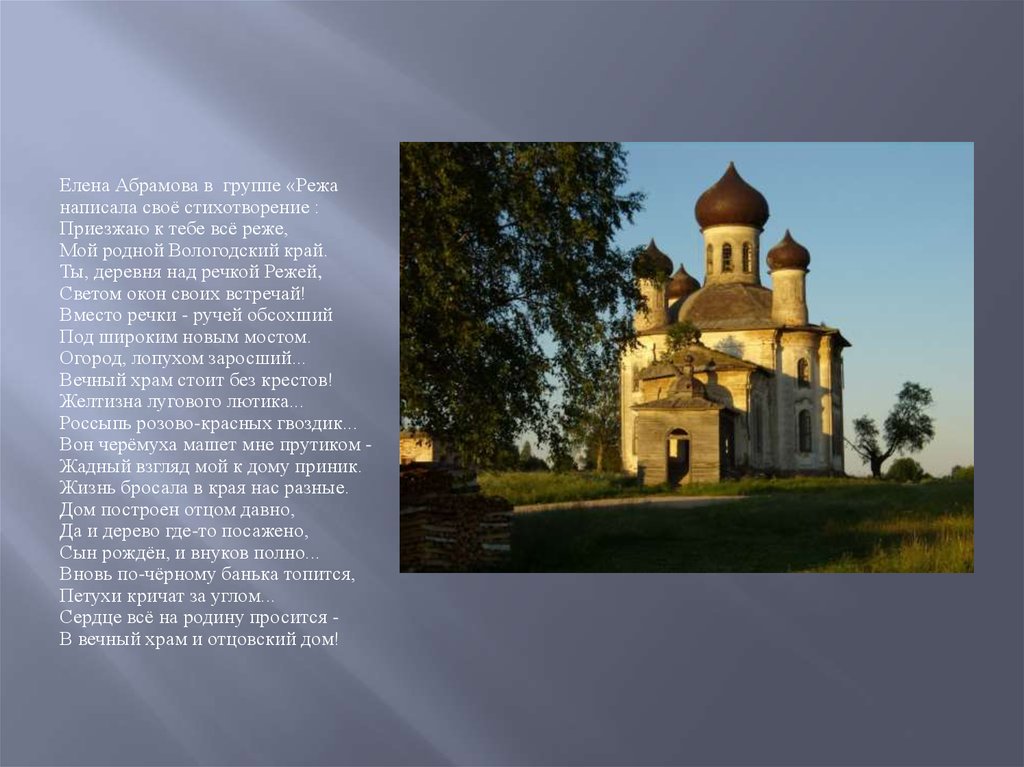 Елена Абрамова в группе «Режанаписала своё стихотворение :