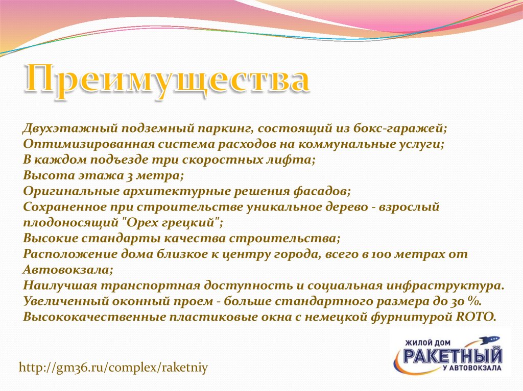 Двухэтажный подземный паркинг, состоящий из бокс-гаражей;Оптимизированная система расходов на коммунальные услуги;