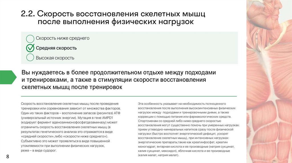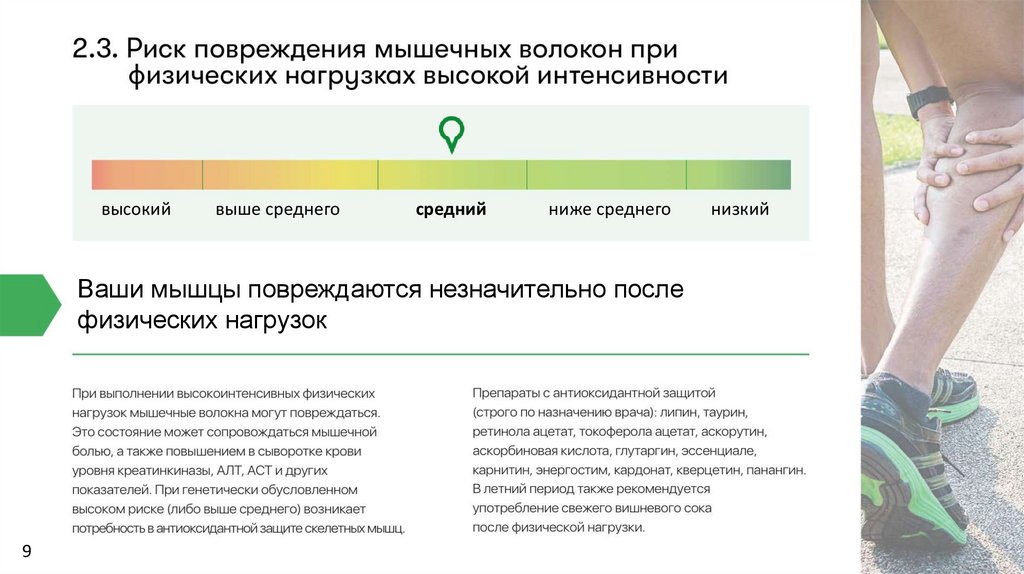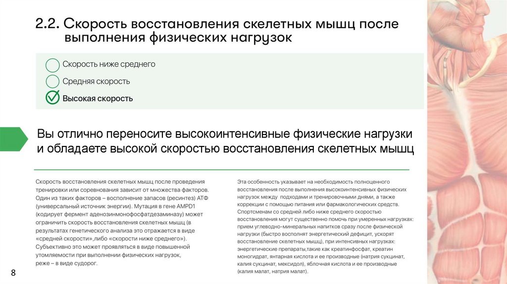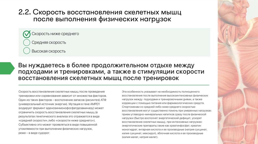 выносливость), а также маркеры морфофункциональных особенностей скелетных мышц и миокарда.