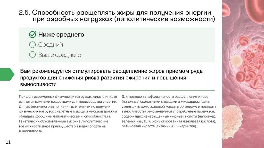 Вам рекомендуется стимулировать расщепление жиров приемом рядапродуктов для снижения риска развития ожирения и повышения
