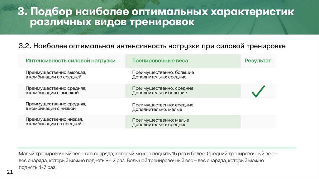 Подбор наиболее оптимальных характеристик различных видов тренировок