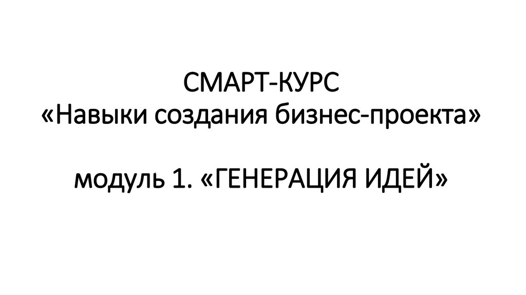 1. СМАРТ-КУРС «Навыки создания бизнес-проекта» модуль 1. «ГЕНЕРАЦИЯ ИДЕЙ»