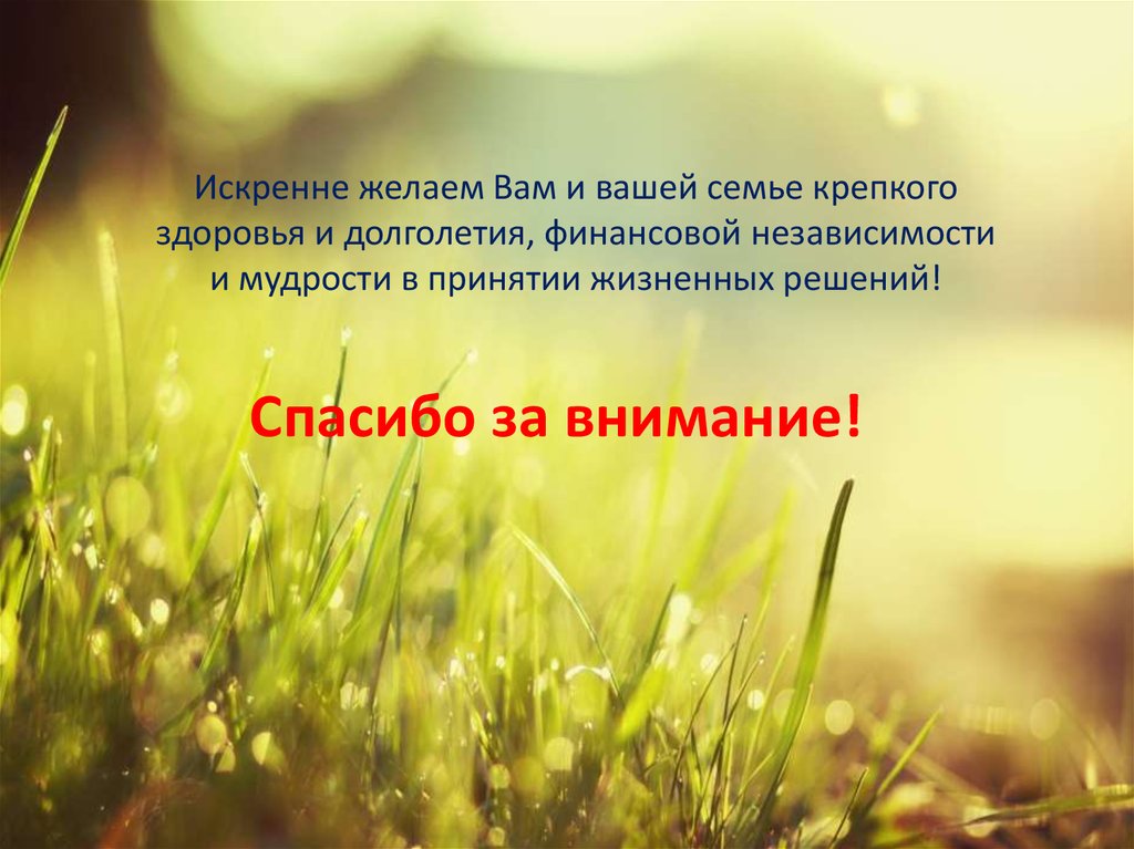 Искренне желаем Вам и вашей семье крепкогоздоровья и долголетия, финансовой независимости