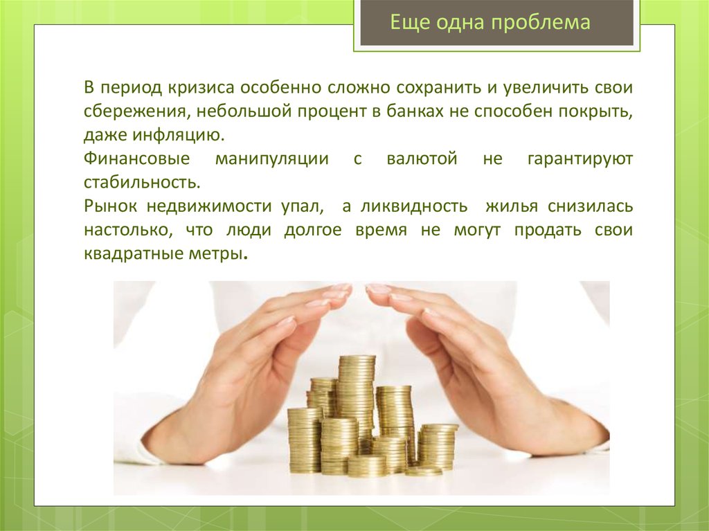 Еще одна проблемаВ период кризиса особенно сложно сохранить и увеличить свои