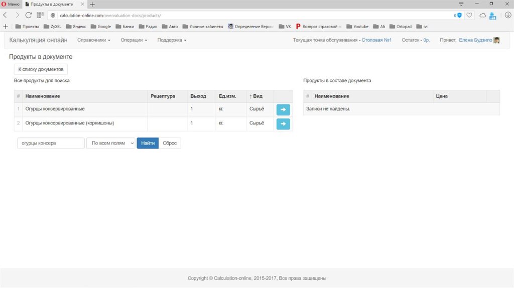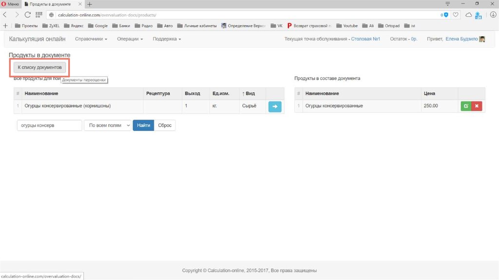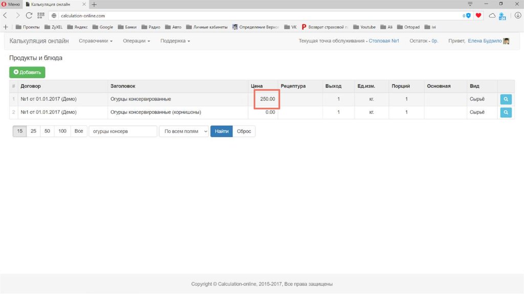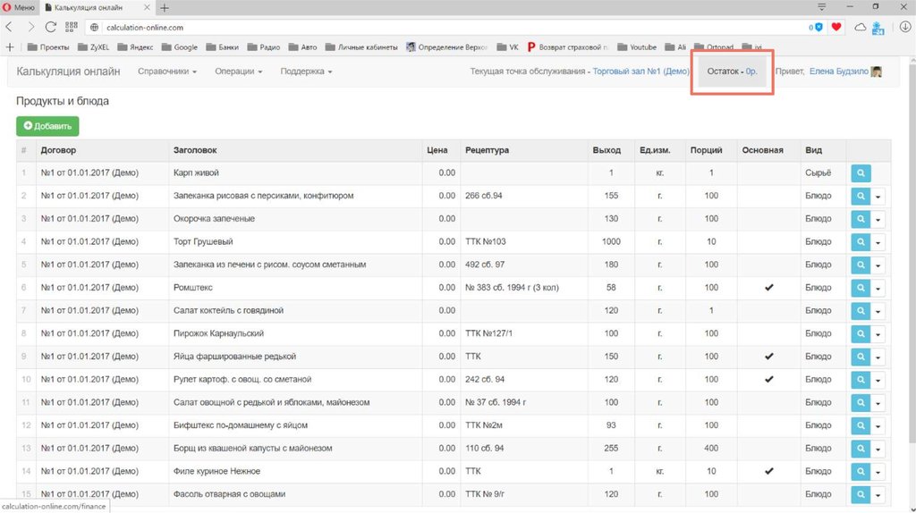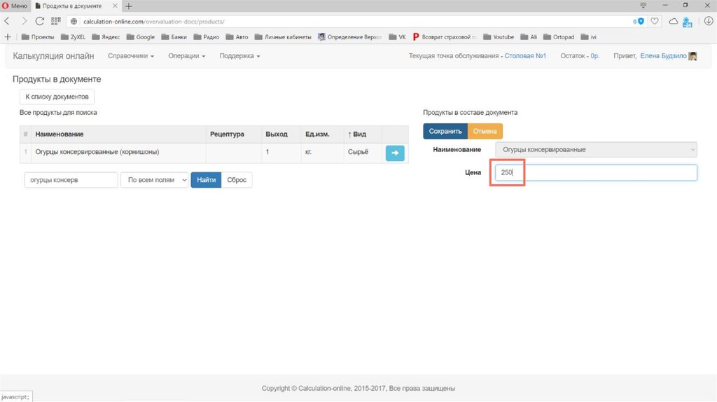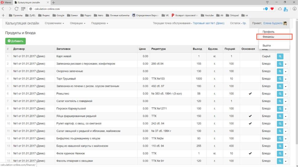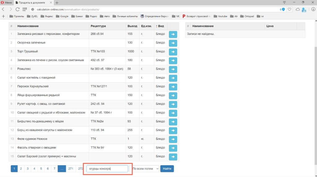 Калькуляция стоимости и пищевой ценности блюд