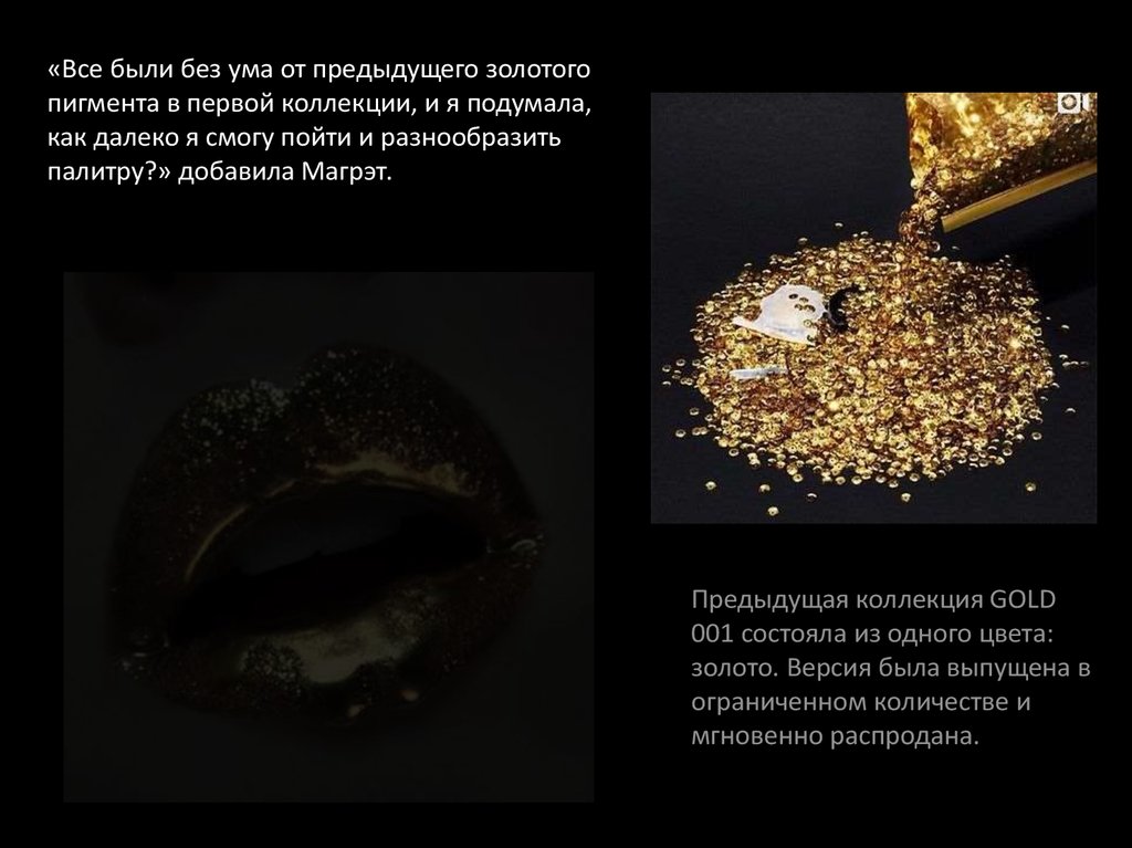 «Все были без ума от предыдущего золотогопигмента в первой коллекции, и я подумала,