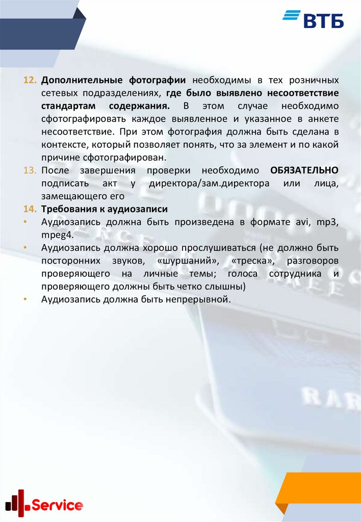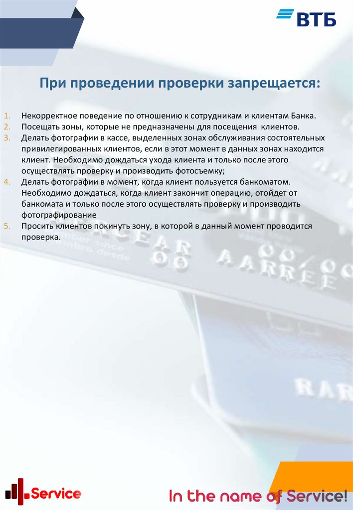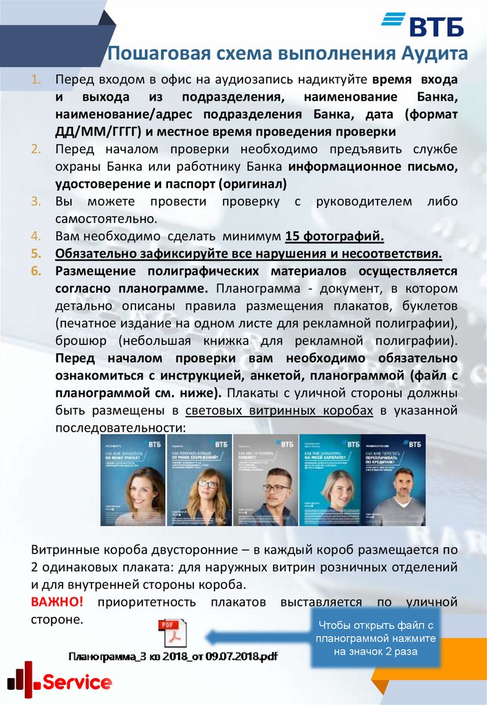 Инструкция Проверяющего Открытая проверка «Аудит корпоративного стиля отделений ВТБ»