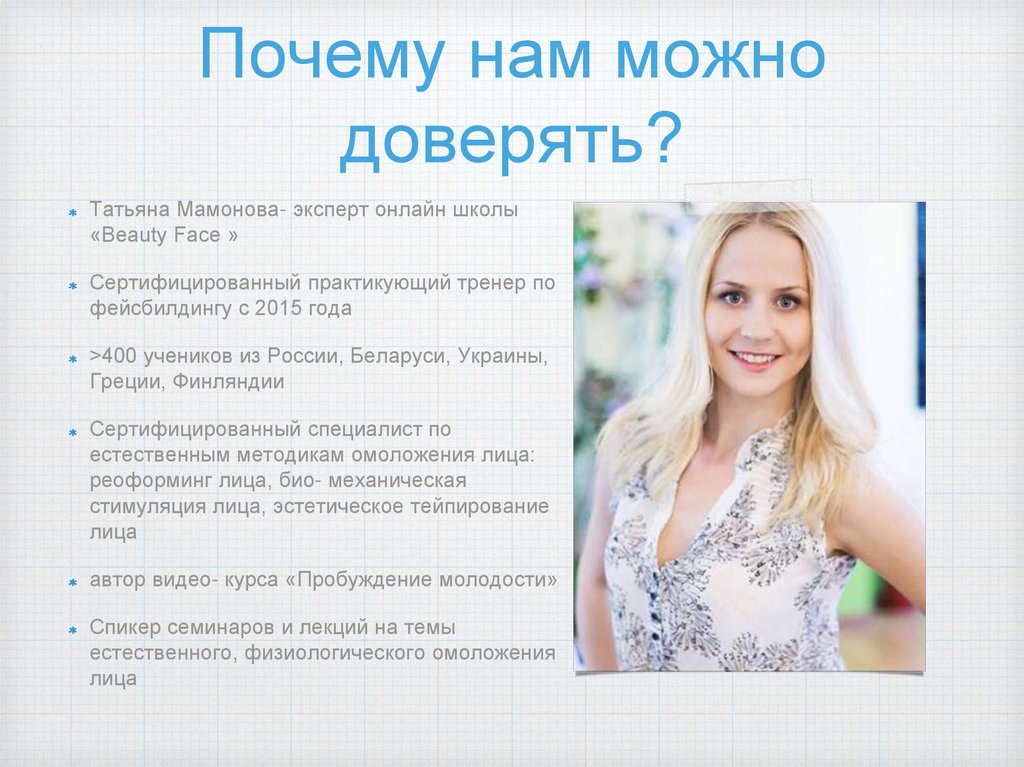 школы, фейсфитнес тренером Татьяной Мамоновой, где задаёте ей