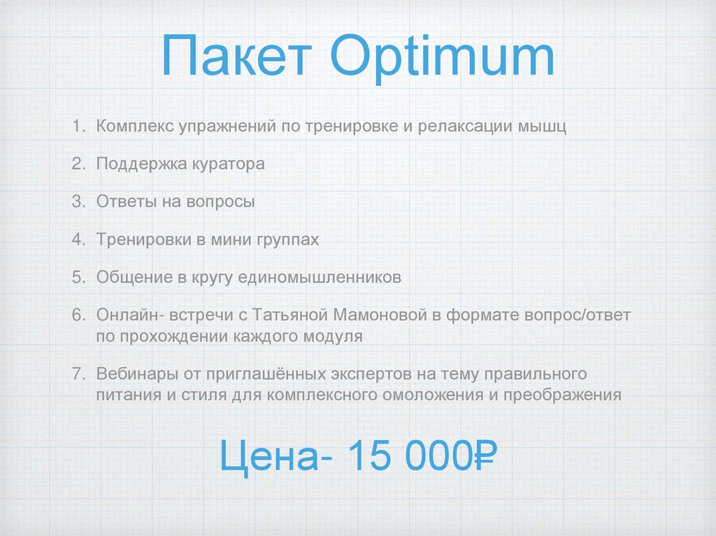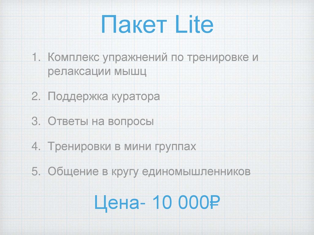 Пакет Lite1. Комплекс упражнений по тренировке и