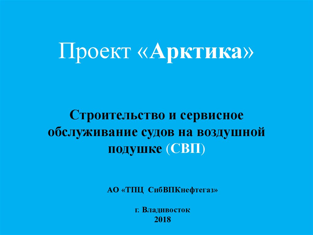 1. Проект «Арктика» Строительство и сервисное обслуживание судов на воздушной подушке (СВП)