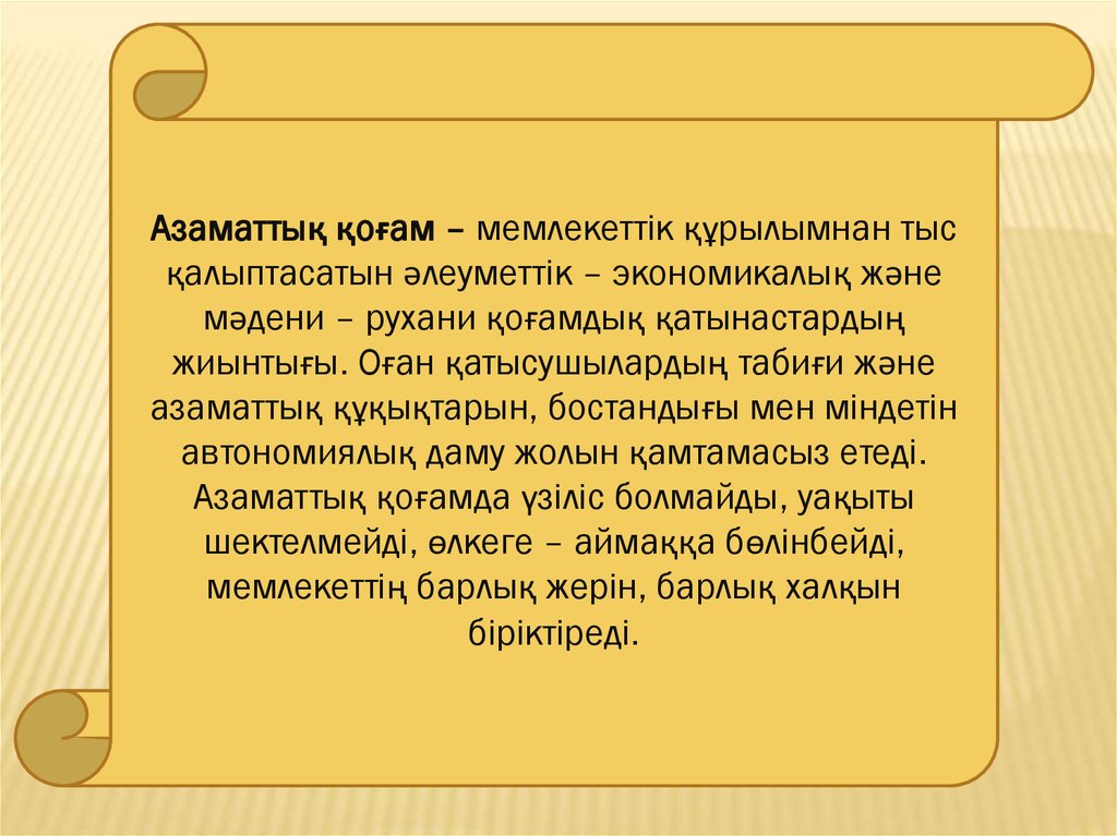 азаматтық қоғам- толық бостандық, демократия қалыптасқан қоғам болуы