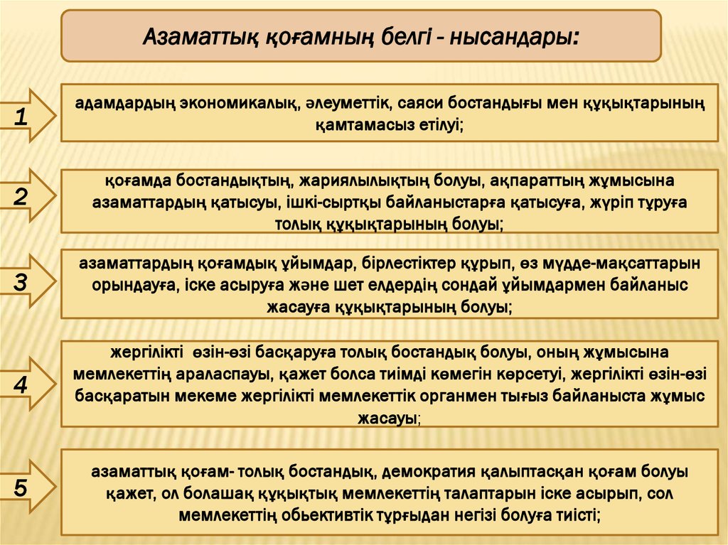 Азаматтық қоғамның белгі - нысандары:1