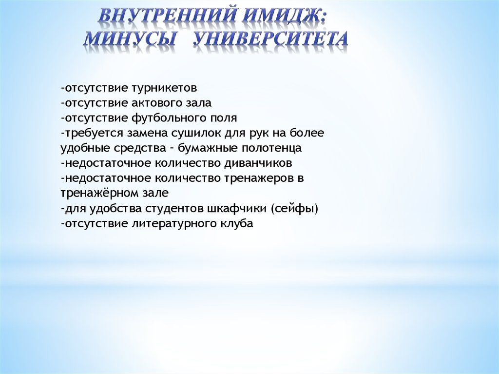 -отсутствие турникетов-отсутствие актового зала