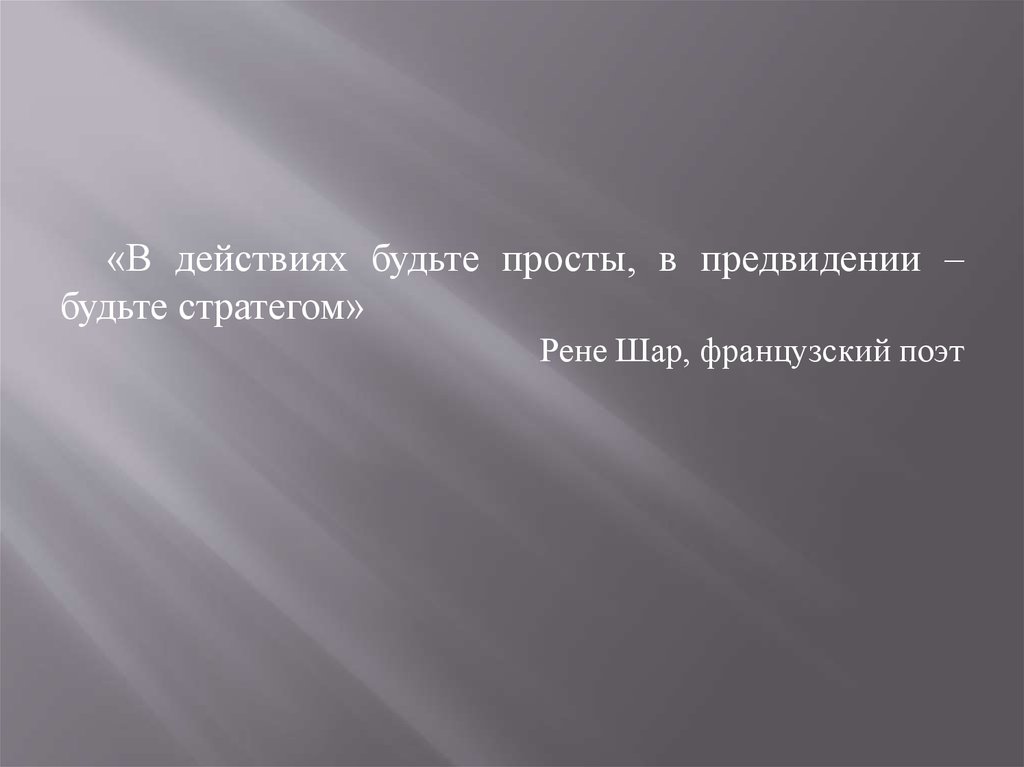 «В действиях будьте просты, в предвидении –будьте стратегом»