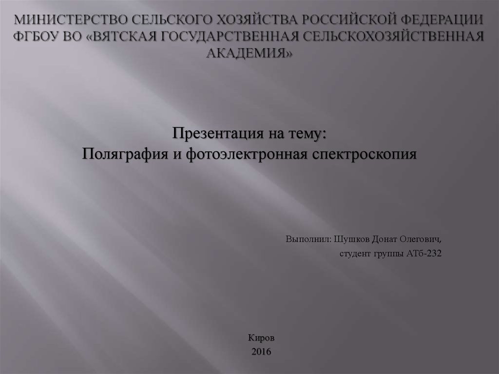 Министерство сельского хозяйства Российской Федерации. Поляграфия и фотоэлектронная спектроскопия