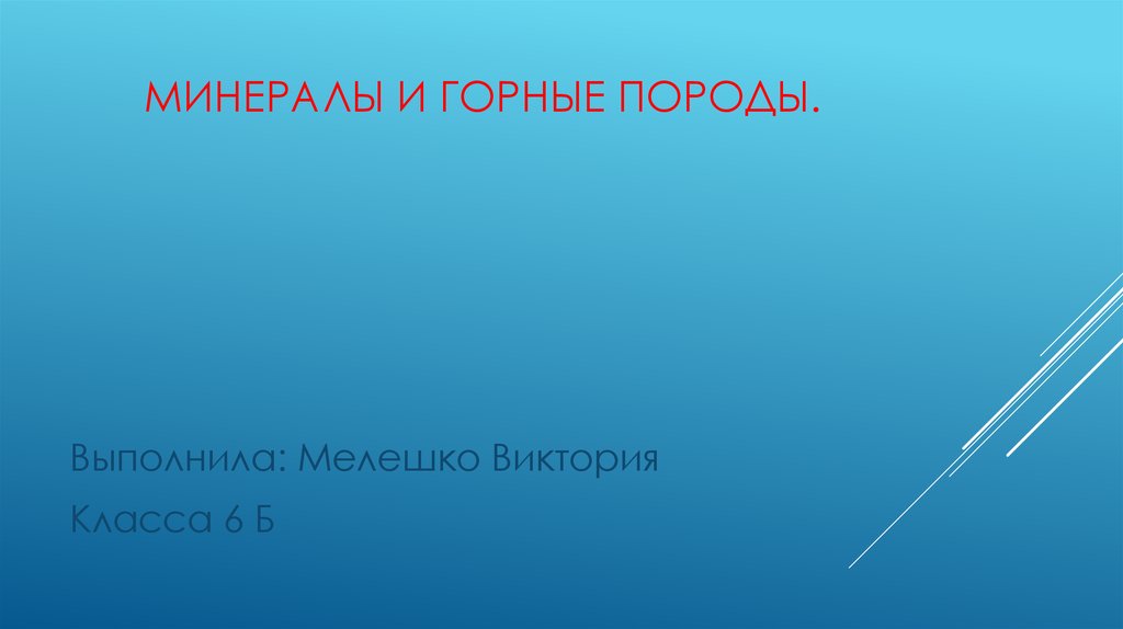 МИНЕРАЛЫ И ГОРНЫЕ ПОРОДЫ.Выполнила: Мелешко Виктория