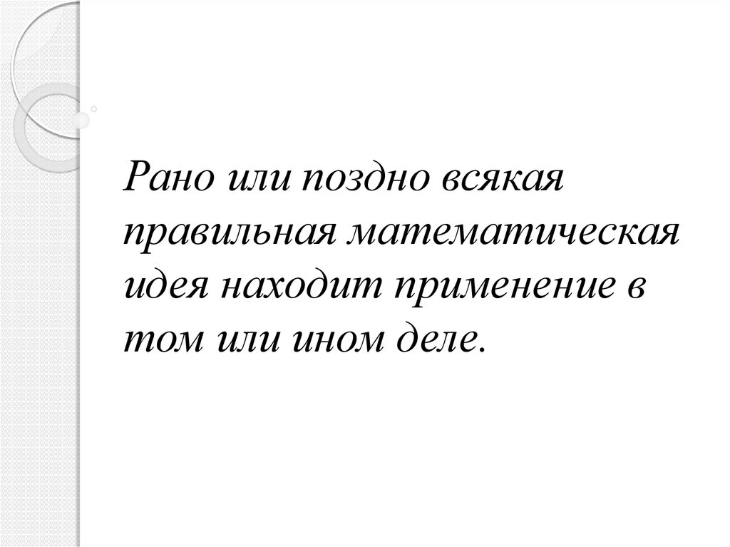 Всякая правильная математическая идея находит применение в том или ином деле