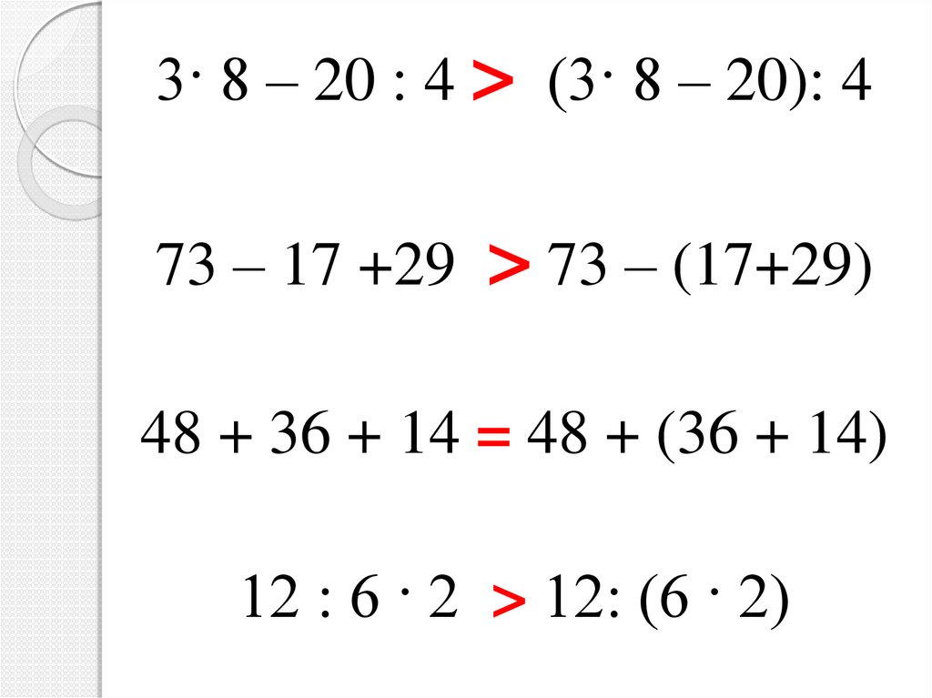 3· 8 – 20 : 4 > (3· 8 – 20): 473 – 17 +29