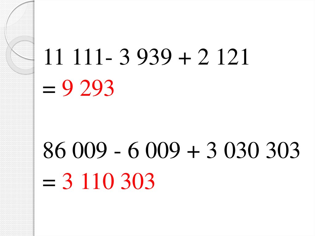 11 111- 3 939 + 2 121= 9 293