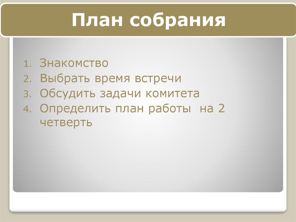 План собранияЗнакомство