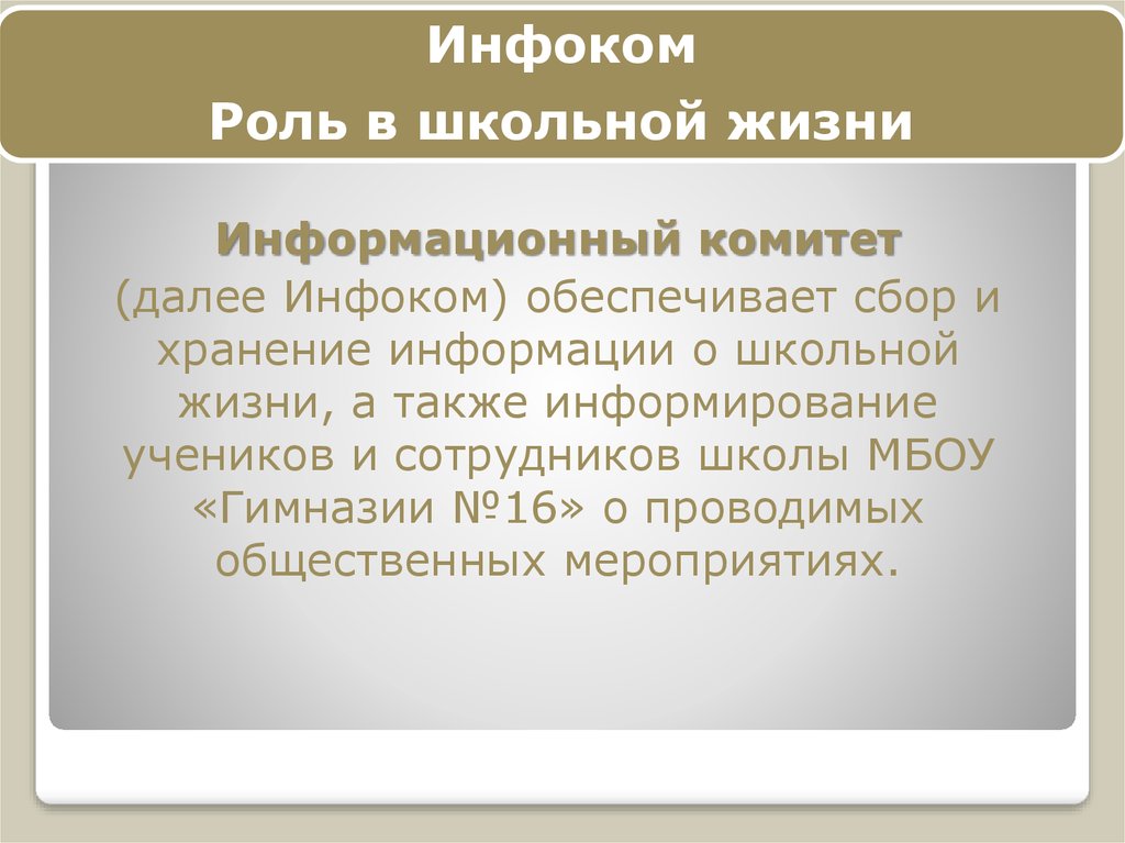 Инфоком. Роль в школьной жизни