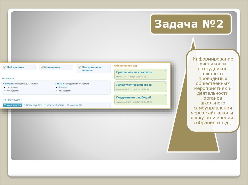 • Информирование учеников и сотрудников