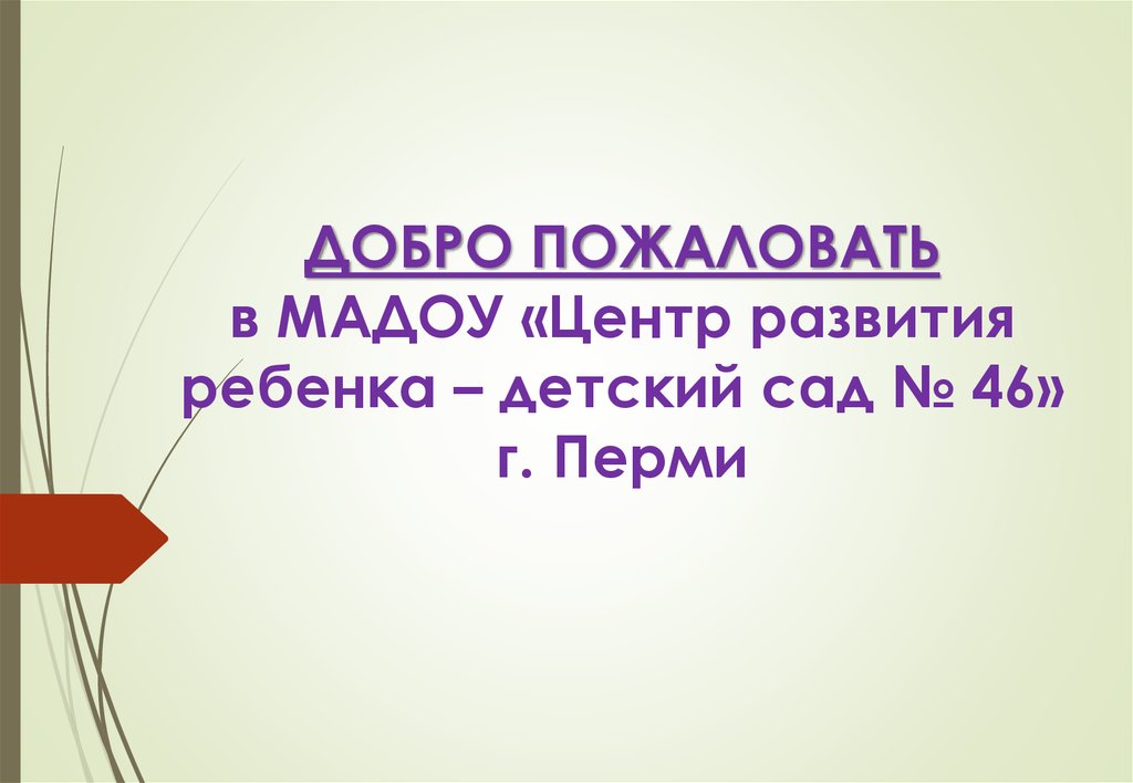 1. ДОБРО ПОЖАЛОВАТЬ в МАДОУ «Центр развития ребенка – детский сад № 46» г. Перми