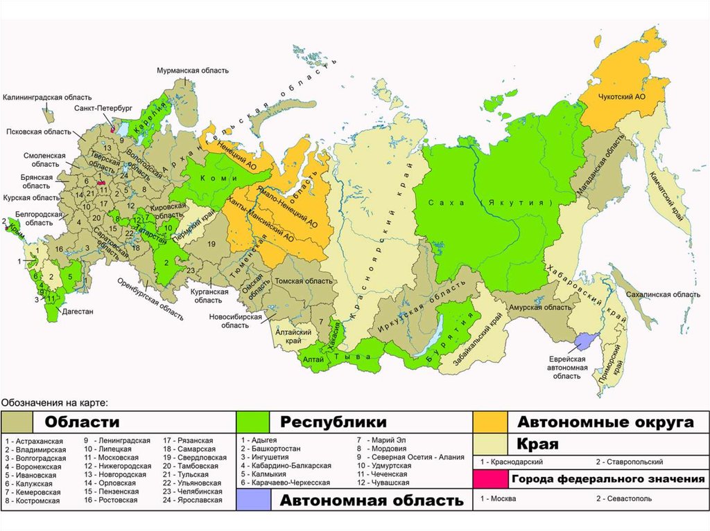 Административные части (губернии, края,провинции) не обладают суверенитетом, у