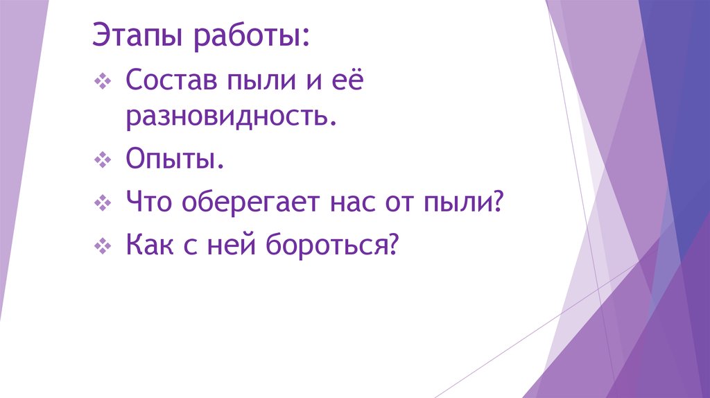 человека и как с ней бороться?Цель работы: узнать как пыль влияет на